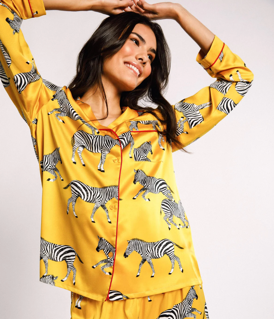 Satin Red Giraffe Print Long Pyjama Set
