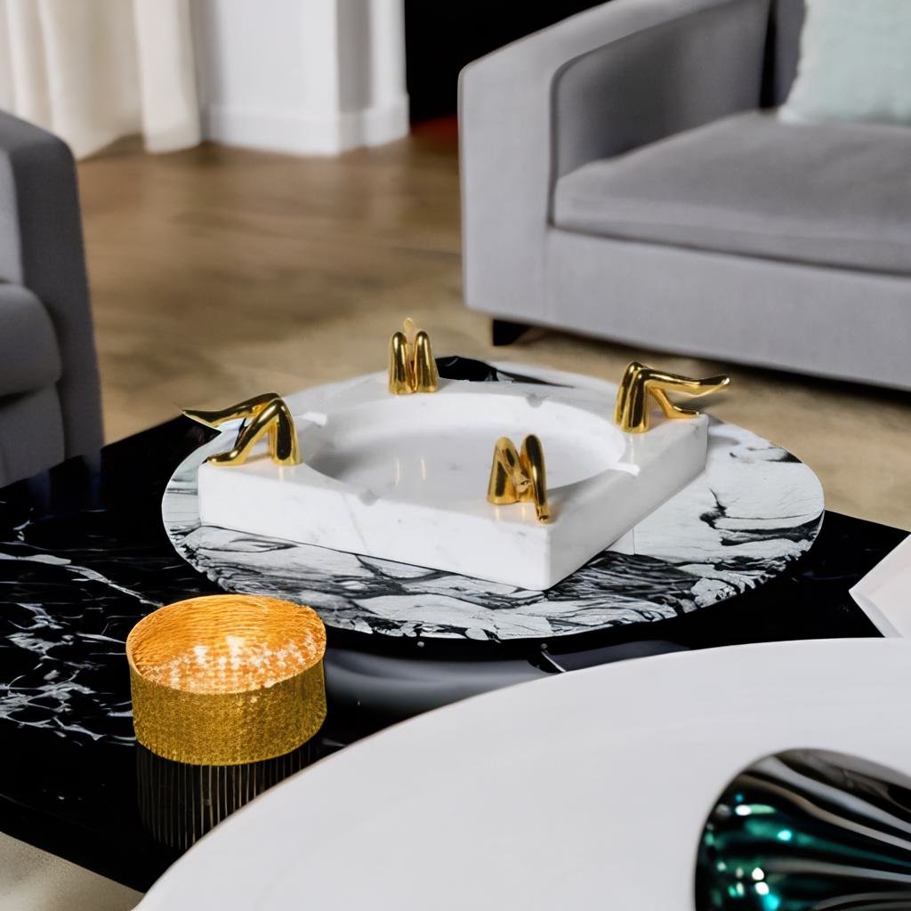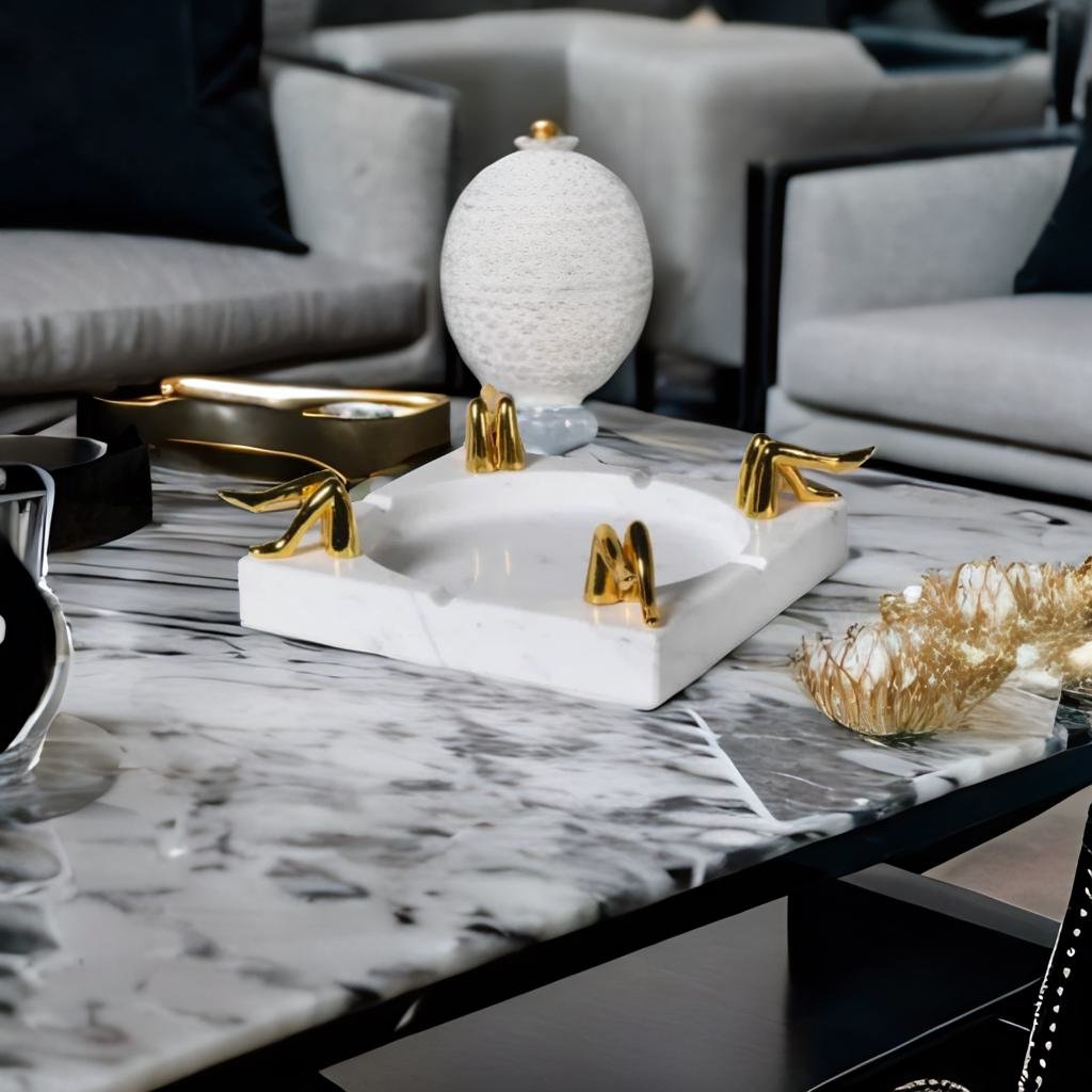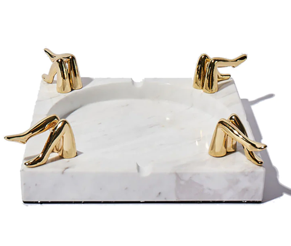 The cheeky Legs for Days Marble Ashtray is the perfect resting spot for your elegant prerolls. Solid marble with brass legs on each corner and 4 divots so everyone gets their own cozy corner. This homey statement piece makes the perfect hostess gift or accent piece for your chic home decor.