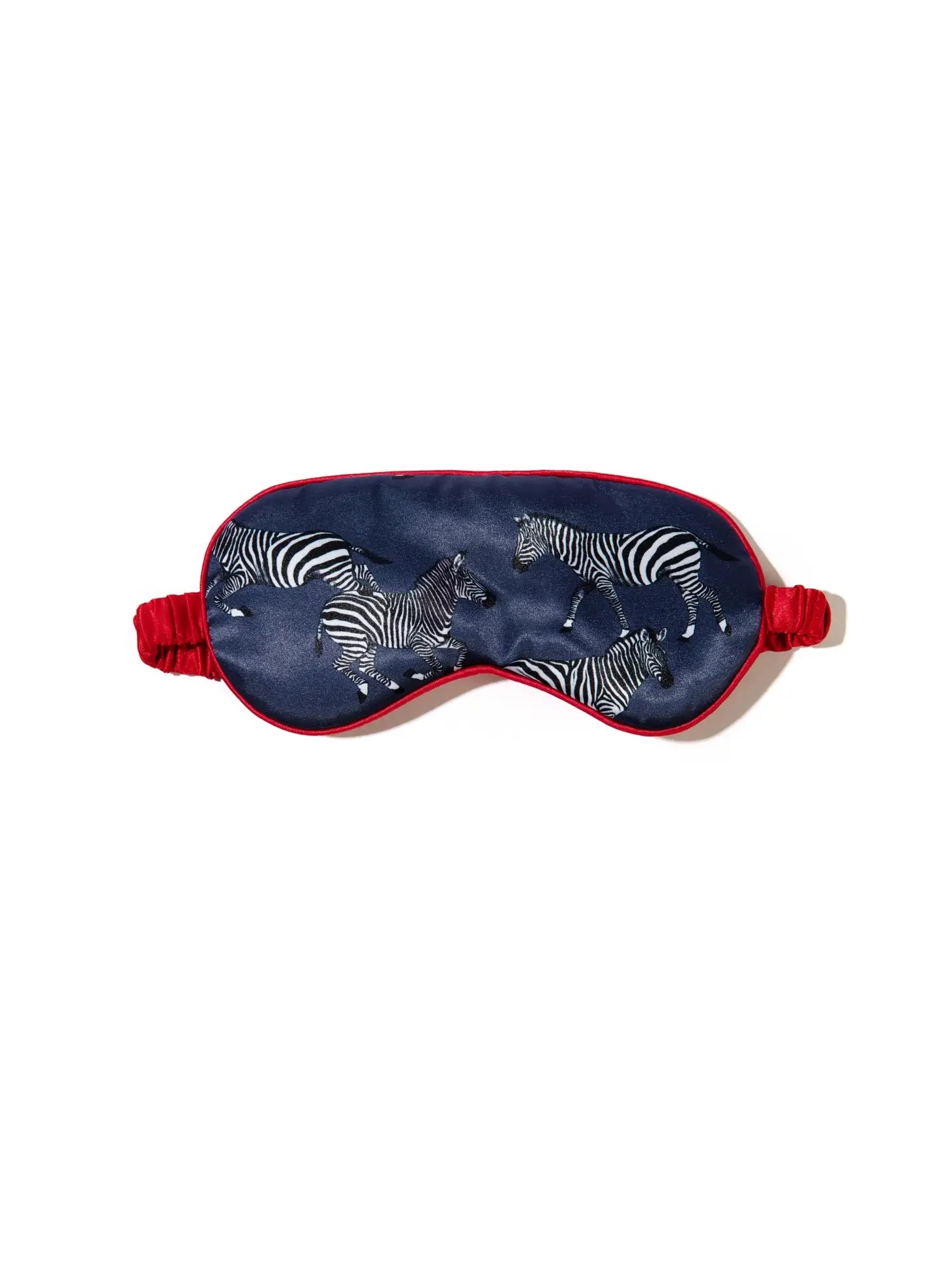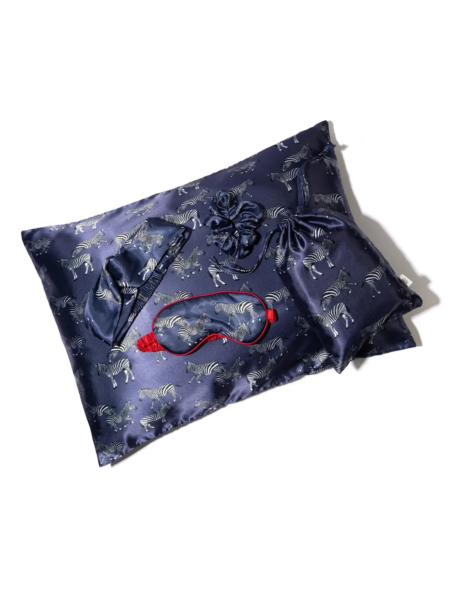 Satin Navy Zebra Print Pillow Case, Hair Scrunchie, Headband, Eye Mask, & Pouch