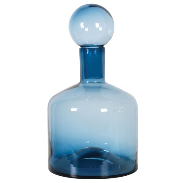 Crafted from high-quality glass, the bottle boasts a rich, deep blue hue that radiates a sense of calm and serenity. Its translucent quality allows the light to play with the colour, creating a mesmerizing visual display. The timeless design of this bottle effortlessly complements various interior decor styles, making it a versatile choice for any room in your home