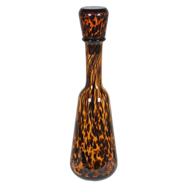 Crafted with meticulous attention to detail, this bottle showcases a rich, earthy brown hue reminiscent of a classic tortoiseshell pattern. The unique visual texture is further enhanced by the play of light, creating a dynamic and sophisticated appearance. Whether you place it on a home bar, shelf, mantel, or use it as a centerpiece clustered with other bottles, this bottle is sure to be a conversation starter and a stylish addition to any space.