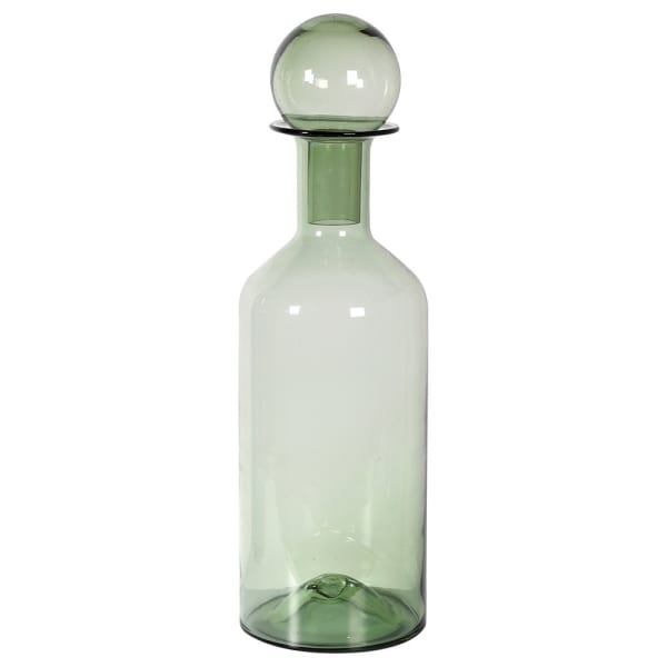 Crafted from high-quality glass, the bottle boasts a rich, deep green hue that radiates a sense of calm and serenity. Its translucent quality allows the light to play with the colour, creating a mesmerizing visual display. The timeless design of this bottle effortlessly complements various interior decor styles, making it a versatile choice for any room in your home.